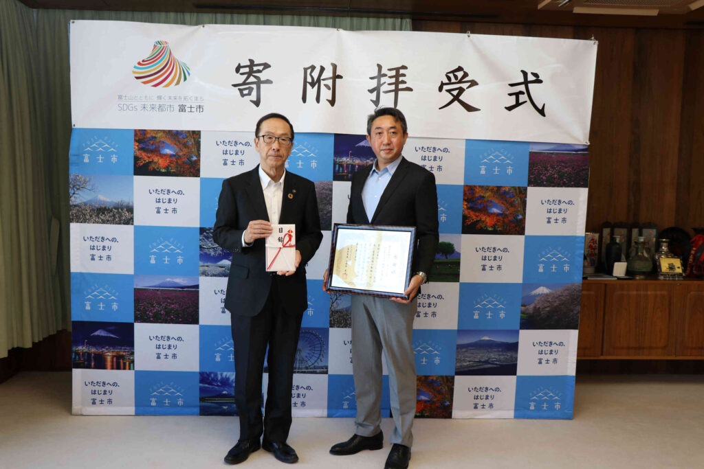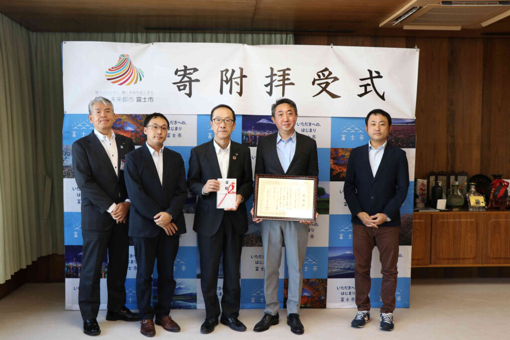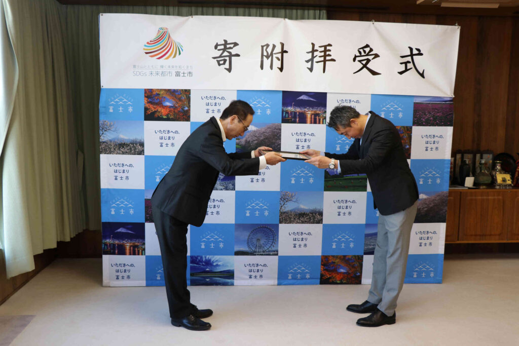 令和7年10月17日(金)11時30分より、SDGsプロジェクト「部活動の地域移行に伴う「観光部」発足事業」を応援するため、企業からの寄附金を富士市が受領する式典が催されました。