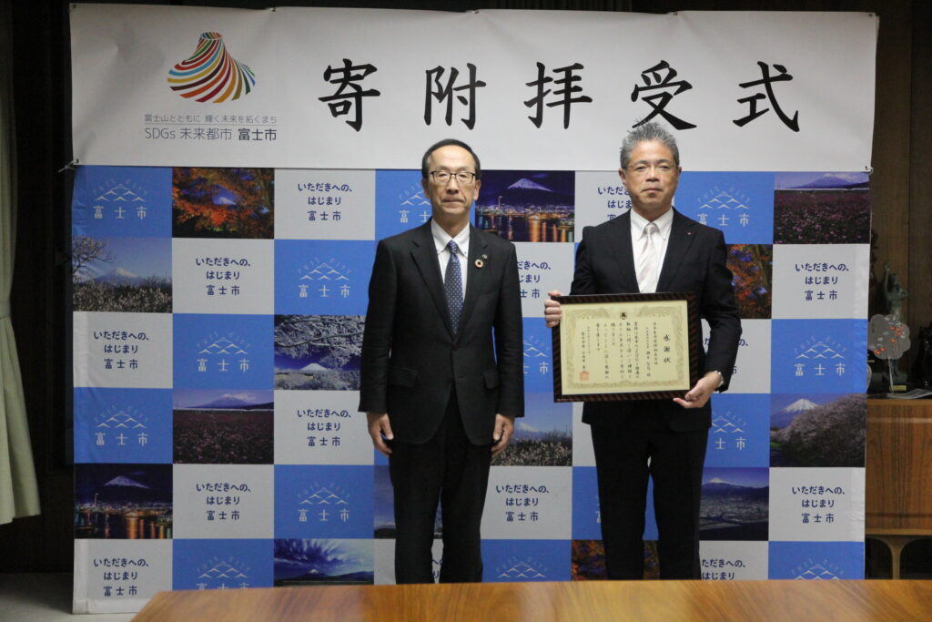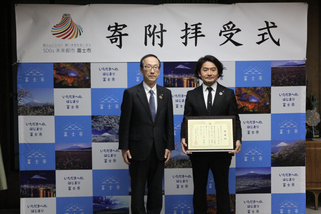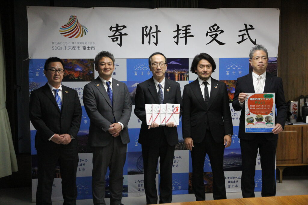 令和7年12月8日(月)、SDGsプロジェクト「健康応援フェスタFUJI」を応援するため、企業からの寄附金を富士市が受領する式典が催されました。